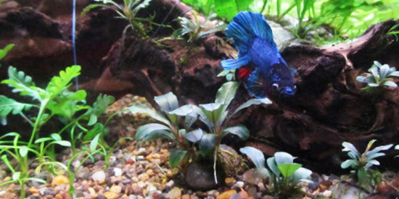 I’m still learning as I go, with that! It’s so hard to choose – Crypts are great and very versatile, and I love aponogetons in my larger tanks. My top three for my betta tank are Bucephelandra, which does well in my low-light setup and adds a nice blue hue that’s different from the other plants.