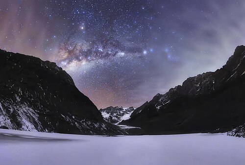 Emission-line filtered image of the Carina Nebula, photographed using a modified version of what is known as the Hubble palette