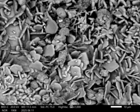 10 𝝻m heart-shaped sample under scanning election microscopy (Yating Zhang)