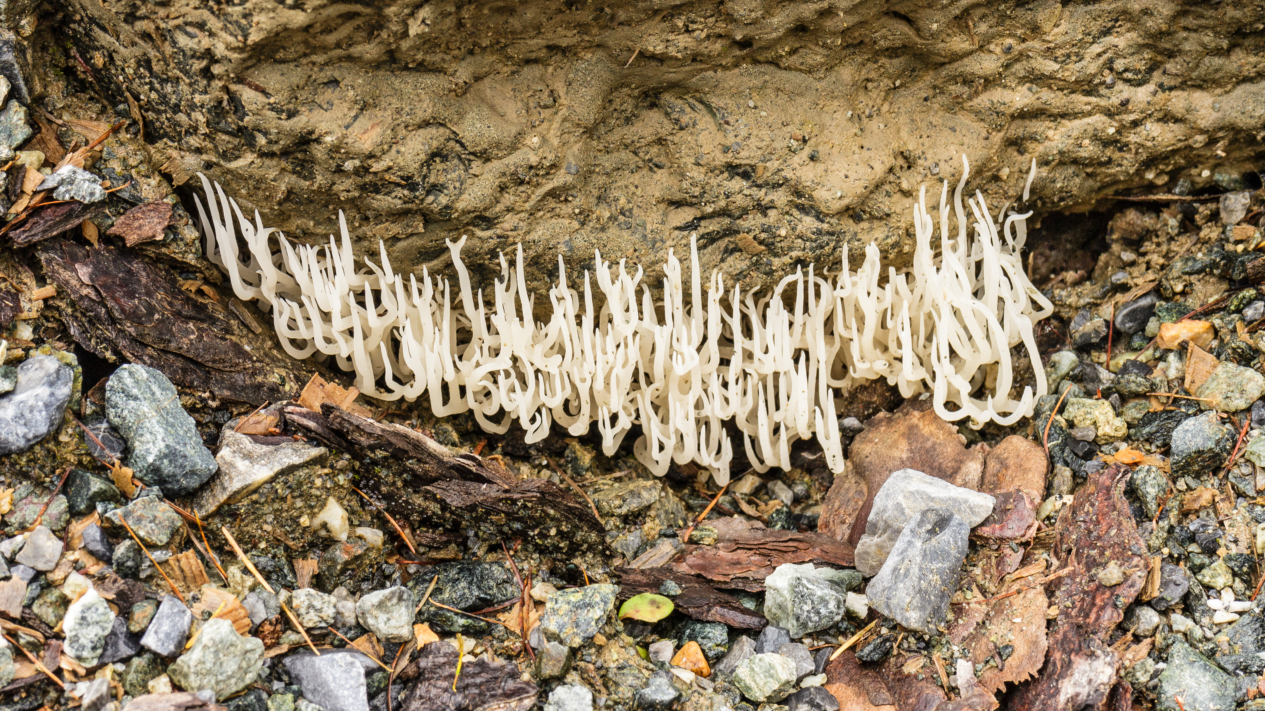 English: Val Sinestra. Candlestick fungus (Xylaria hypoxylon) on an erosion field
